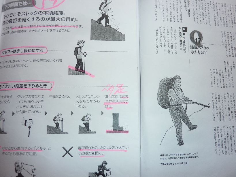 井上幹事から@ストックに使い方,A岩場や斜面での三点確保B鎖場やロープ場での歩き方について、持参のストックなどで、解説後、日頃、ハイキングの団体行動について、全体の行動と安全面から重要なリ-ダ―の任務についての話、また、リ−ダーの指示に従うメンバーの任務について、あるべき姿について、お互いに理解し合うことの重要との話がありました。