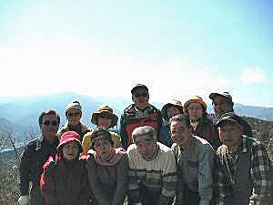 頂上着、11:40、展望は大山から最高峰、蛭ヶ岳など、丹沢山塊が一望出来、眼下