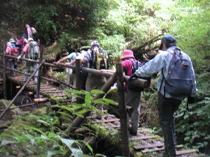 予想以上に急な斜面もありました。前日の雨で、沢筋は水量も多く、飛沫を