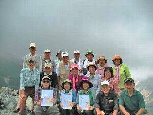 19名(内、女性7名)で、連日、快晴に恵まれ、猛暑の中、高原や尾根を渡る爽やかな風に救われ、