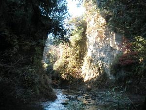 爽やかな空気、懐かしい里山の風景、静かな渓流、切り立った断崖の