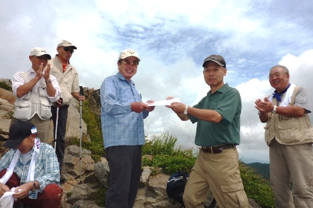 今回、山野義幸さんに通算75回参加賞を乳頭山山頂で差し上げました。