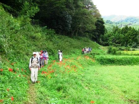 その後、坂を下り彼岸花の自生地、古道日陰道に入る。