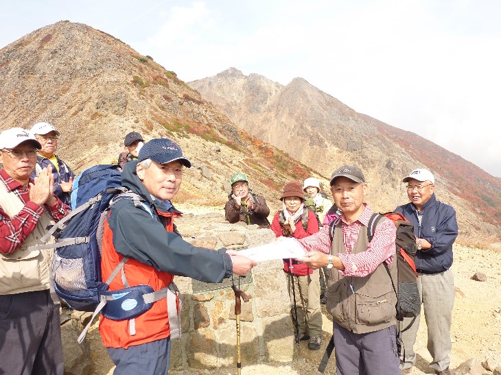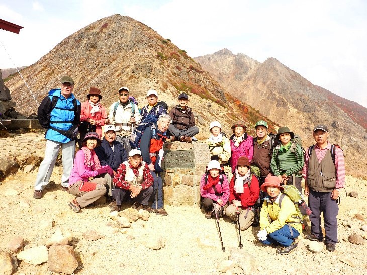 那須・茶臼岳山頂で記念写真 |
