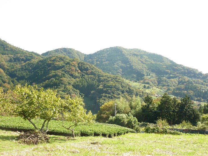 まもなく茶畑やミカン畑が目立ち始めてきた。柿の木もある。このあたりからかなりの急坂が続く。