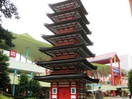 駅から徒歩でビナウォークの中央公園内にある国分寺の七重の塔の
