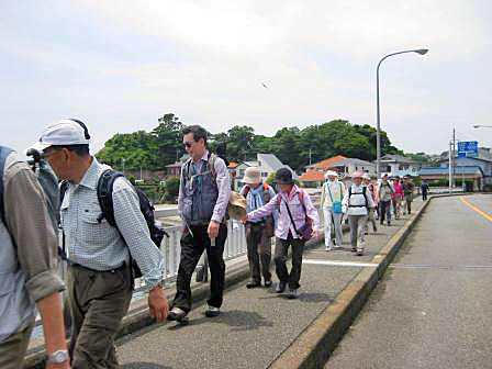 うみかぜの路、走水から馬堀海岸まで海辺の路の区間は、東京湾を行き交う大小の船を眺め、又遠く富士山を望み乍の遊歩道散策の橋上からは、10cm位の小魚達の泳ぎが見られた。潮の香りと潮風の涼しさが、歩きの疲れを癒してくれました。