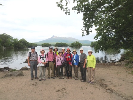 大沼公園にて、駒ガ岳をバックに記念写真 |