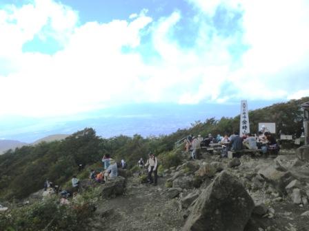 山頂からの眺め:ガスっているが芦ノ湖が見える |