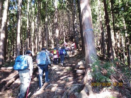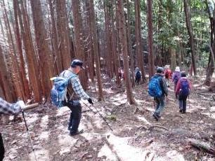 最後の下山開始・・・整然とした杉林の中を下山 |