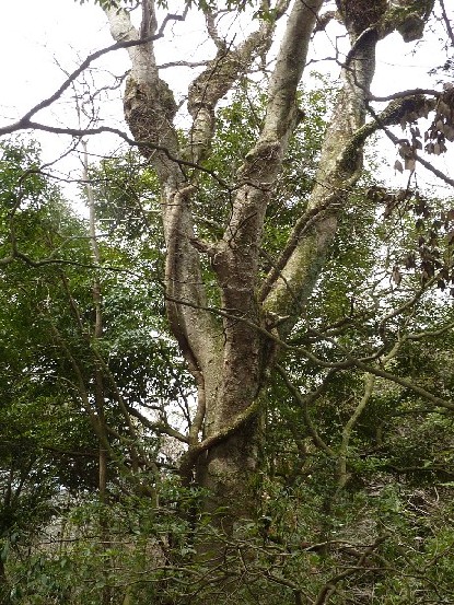 「函南原生林」は箱根外輪山のひとつ鞍掛山の標高500mから800mの斜面に広がる森で、身の丈を超す笹に覆われた道を下るとブナ、アカガシ、ヒメシャラ、ケヤキなどの巨木が随所に見られる。