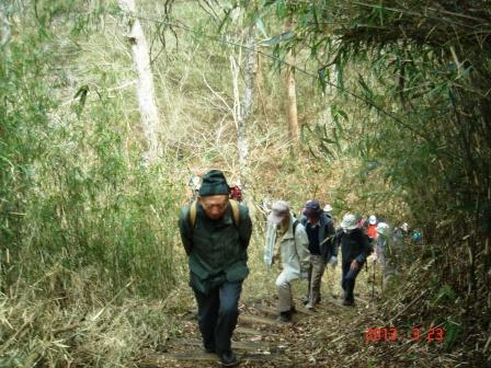 約1時間ほどで原生の森公園に到着、日当たりのよい広場で昼食後、来た道を引き返すが、 今度は登りが続き汗をかく。