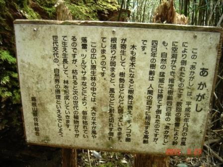 アカガシ倒木の案内板