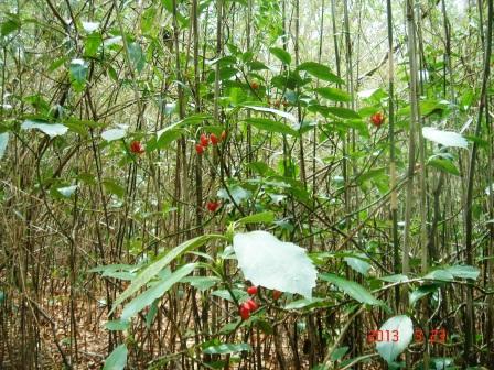 アオキの実が咲いている |