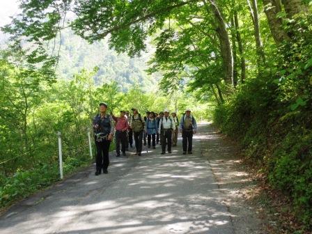 今日は、素晴しい天候と新緑の中で約4時間の行程を無事終えた。