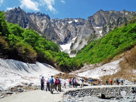 30分ばかり歩いて幽ノ沢出合に到着。まだ雪渓が残っており、