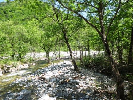 途中川原で昼食を取った後は、平坦なコースだ。