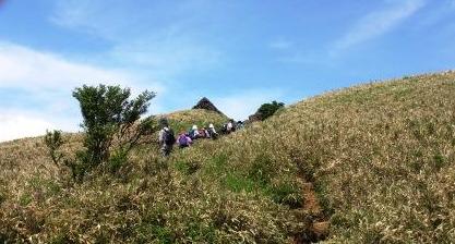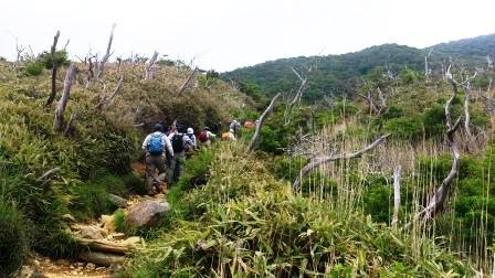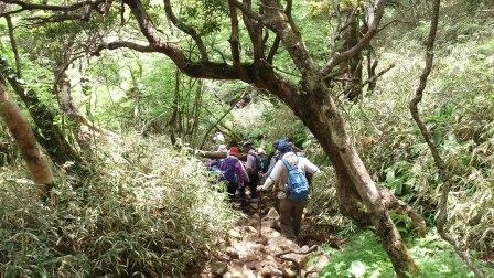 山頂手前の急傾斜を登る |