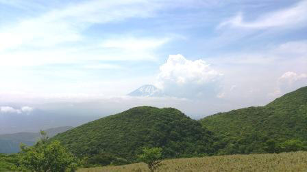 そして駒ケ岳頂上では、振り返ると秀峰富士山が雲間から頭を出し、エールを送ってくれました。