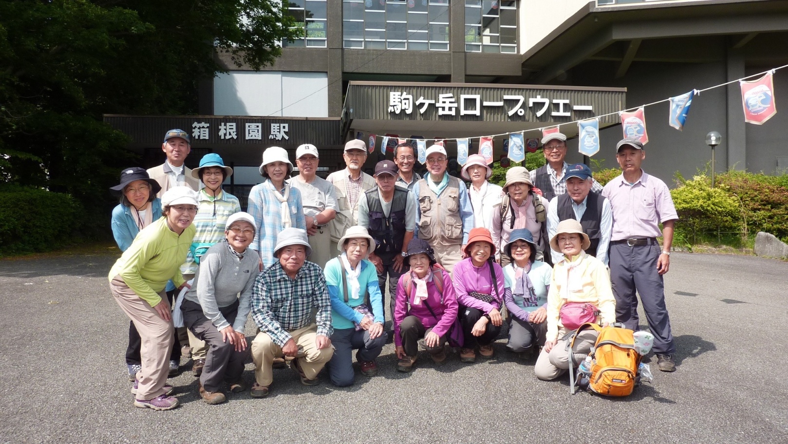 駒ヶ岳のロープウエイ乗り場で各々のコースのメンバーと再会し全員無事を確認し箱根園に下りました。