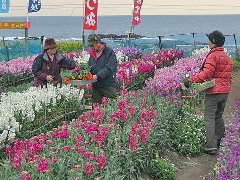 帰りのバスの待ち合わせ場所、白間津の花摘み販売所に予定通り、1時30分着。