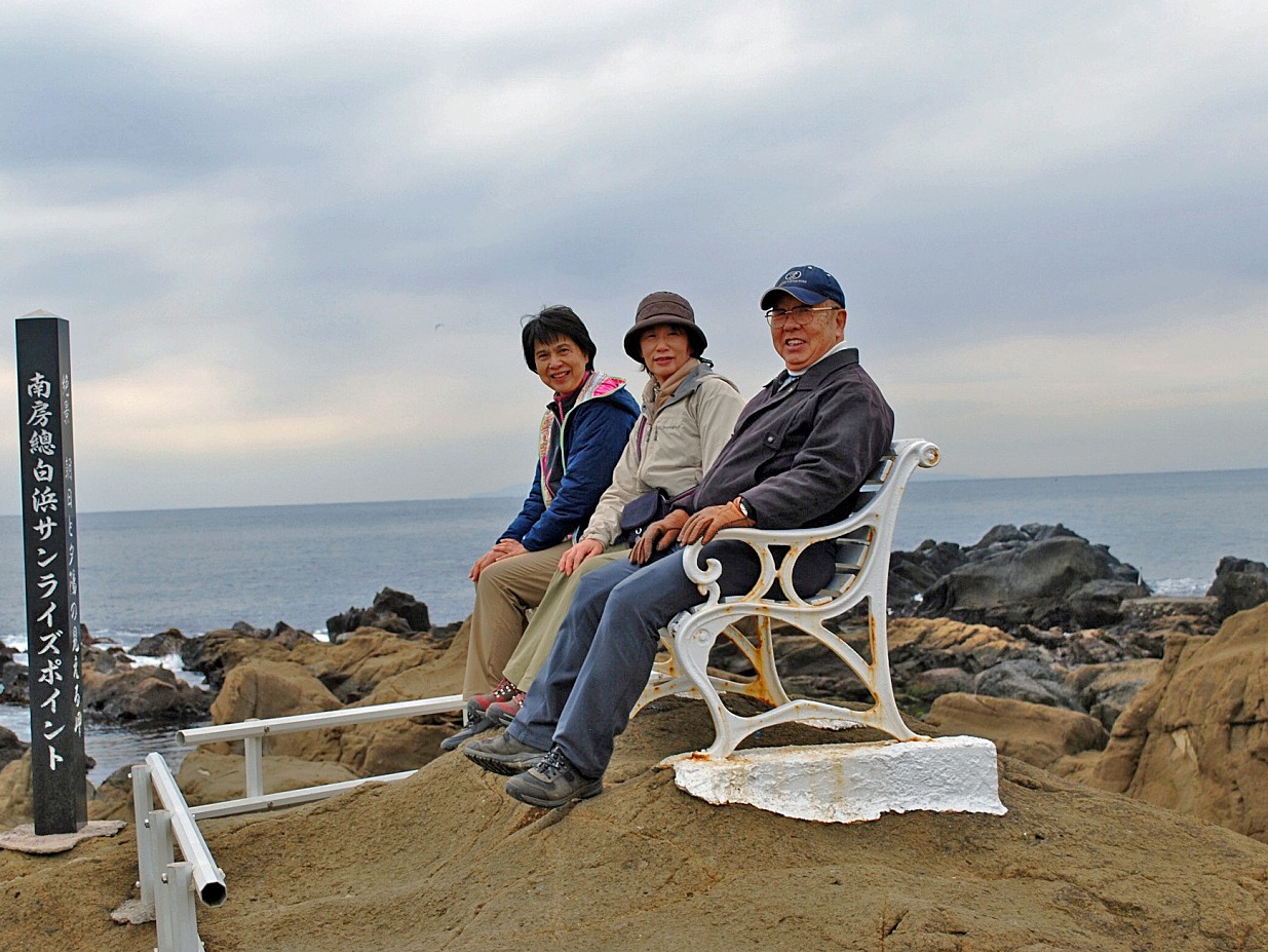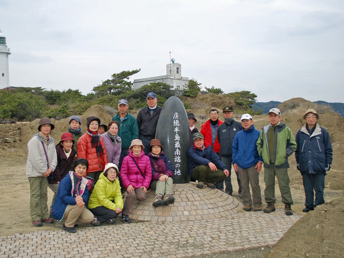 帰路は、綺麗な海岸線に沿い、白浜(野島崎)灯台と千葉県最南端の碑付近を散策し、岩礁に打ち上げる白い波を眺め、眼前には、白い雪の伊豆大島迄見えました。