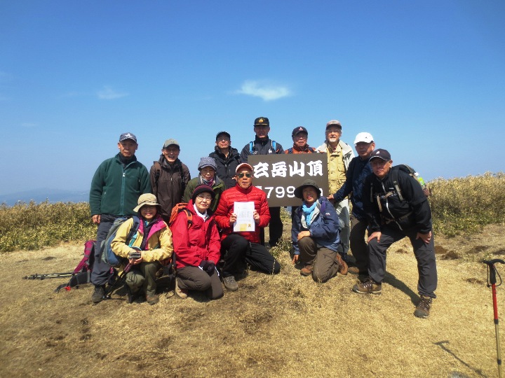 健脚揃いのメンバーなのでコースタイム通り12時に玄岳山頂(799m)に到着。