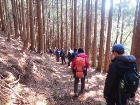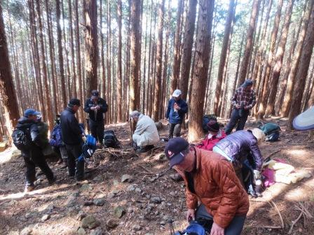 杉林の中に出て、休憩。 |