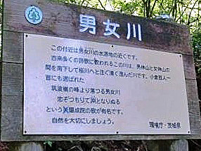「男女川の源流」に出る。看板前で休憩をとり水分を補給する。