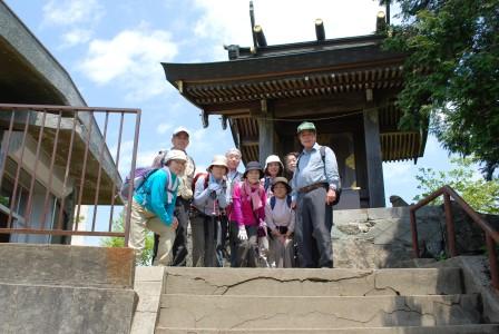 Bコース組が男体山山頂の神殿前で記念写真を取り、下山。Aコース組と合流し、昼食。
