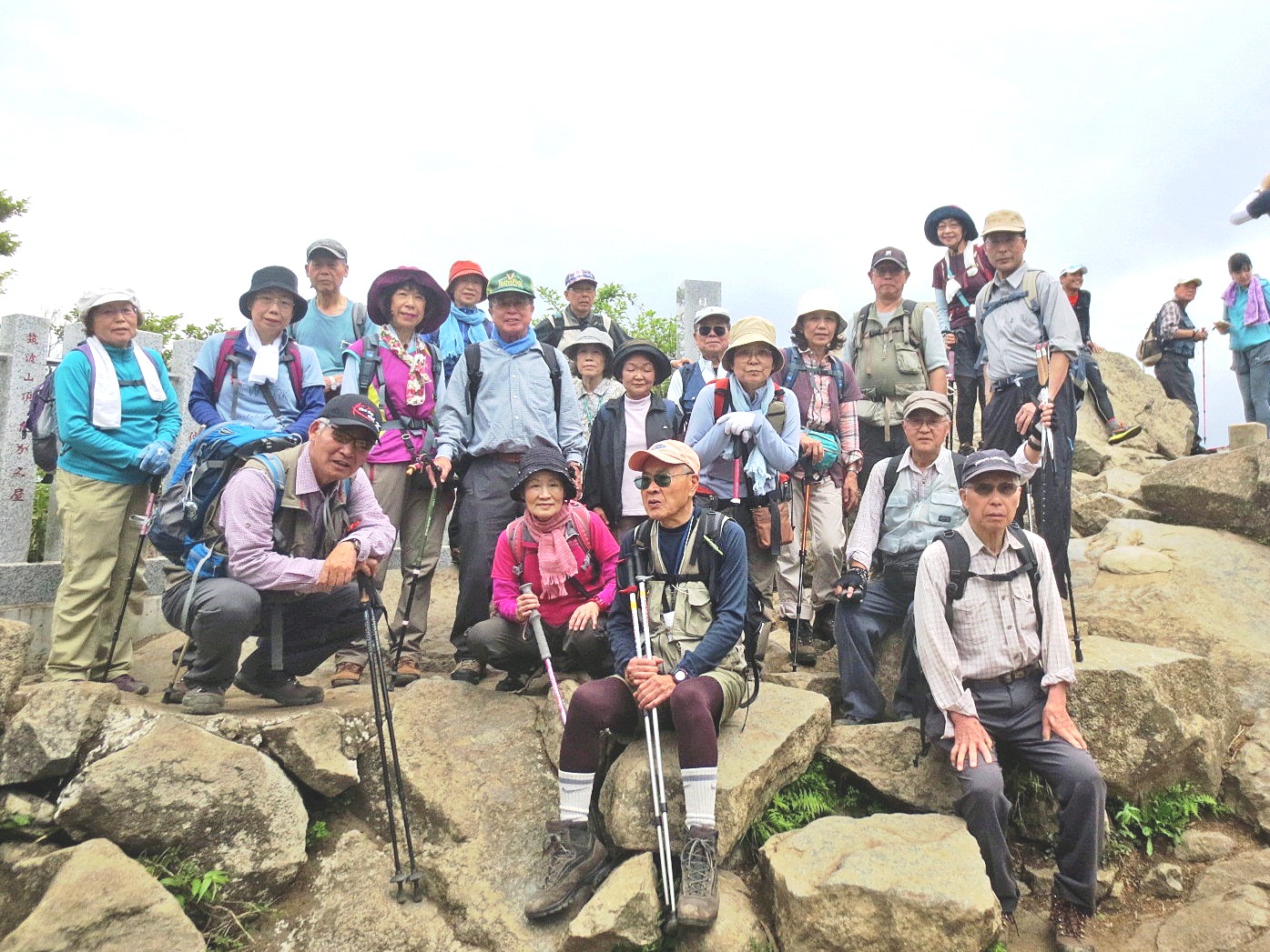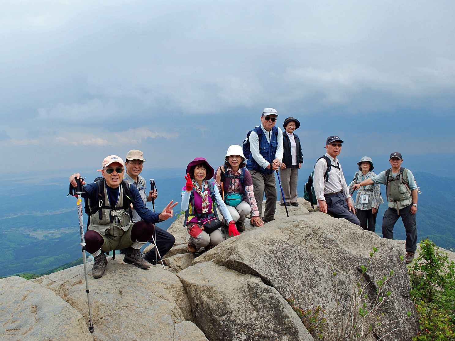 雲は広がってきた。山頂で記念写真をとりいそいで下山。