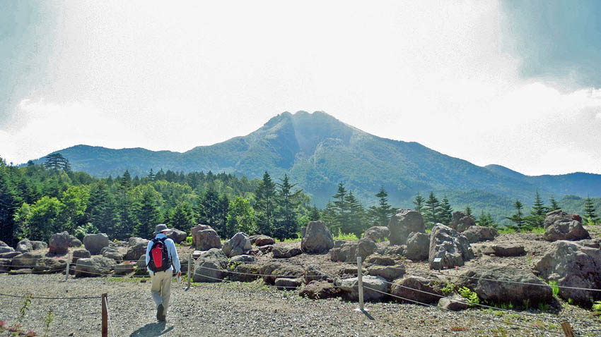 三日目は、ホテルを出て、酸性度の強い源泉のお湯に十円玉を曝し真っ黒に酸化する“理科の実験” をしている子供達の脇を抜け、とりつきの急登を凌ぐと金精道路に辿り着きそこを横断すると刈込湖・切込湖ハイキングの入口でした。溶岩の上に生えた様々なコケを眺めながら樹林帯の中の緩やかな登りを過ぎるとやがて木の階段が現われそれを下りると刈込湖の畔に出ました。