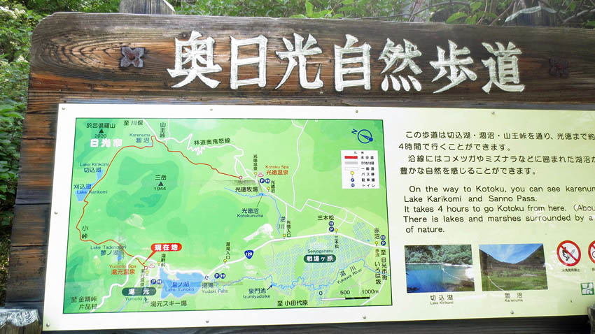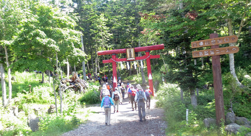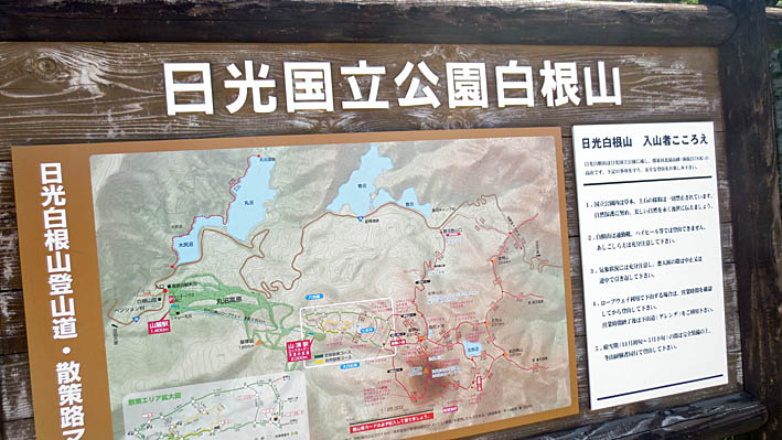 <日光白根山登山道、散策道案内板> <さ〜出発>