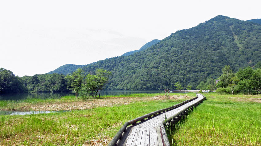 <宿泊のホテル> <湯ノ湖湖畔の木道>
