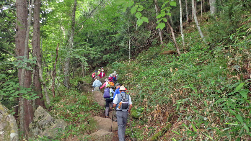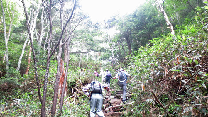 <厳しい登りが続く> <やっと、ゆるやかな登山道になった>