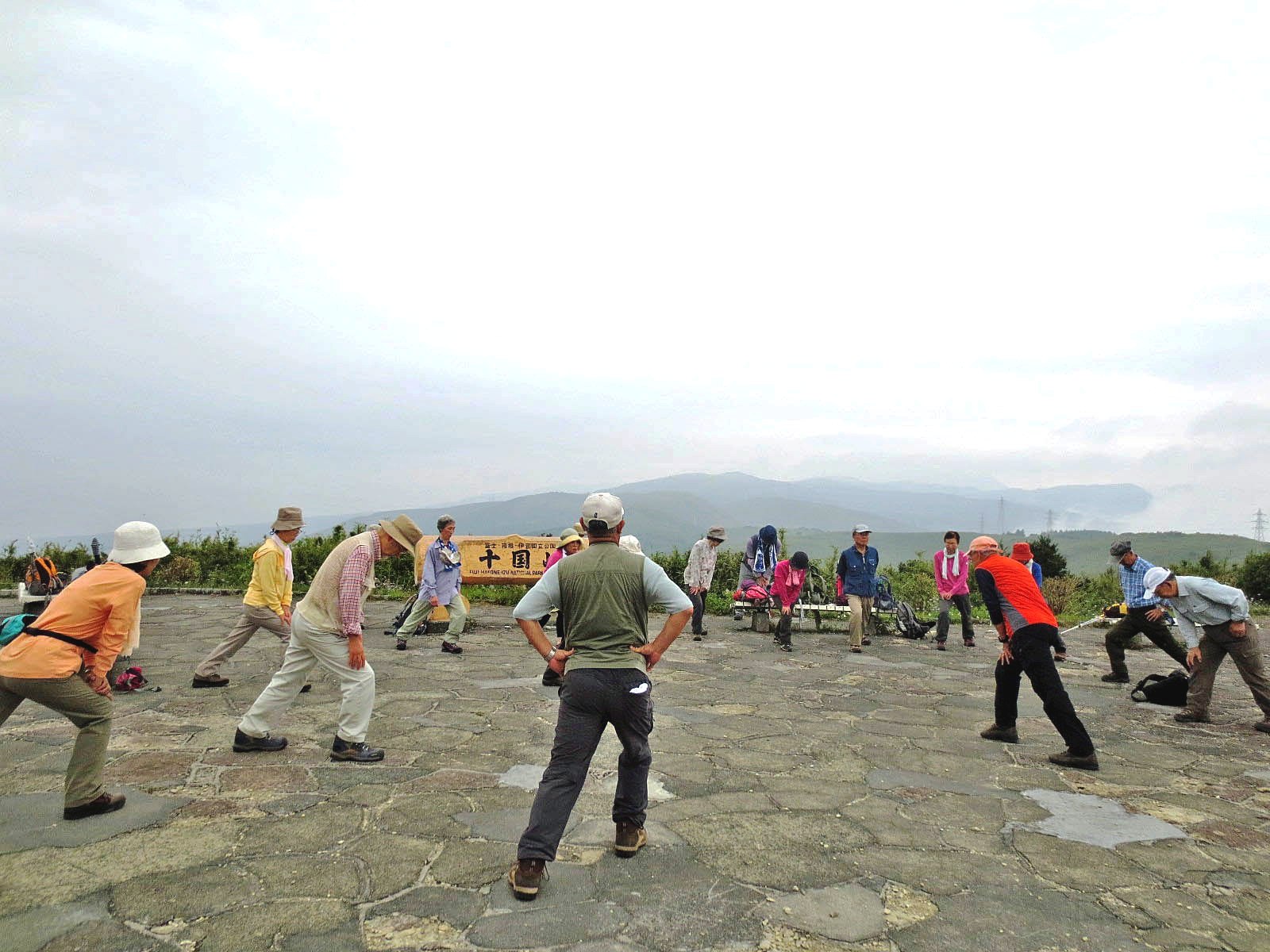 <山頂で記念写真> <昼食後、出発。十国峠に向かう>