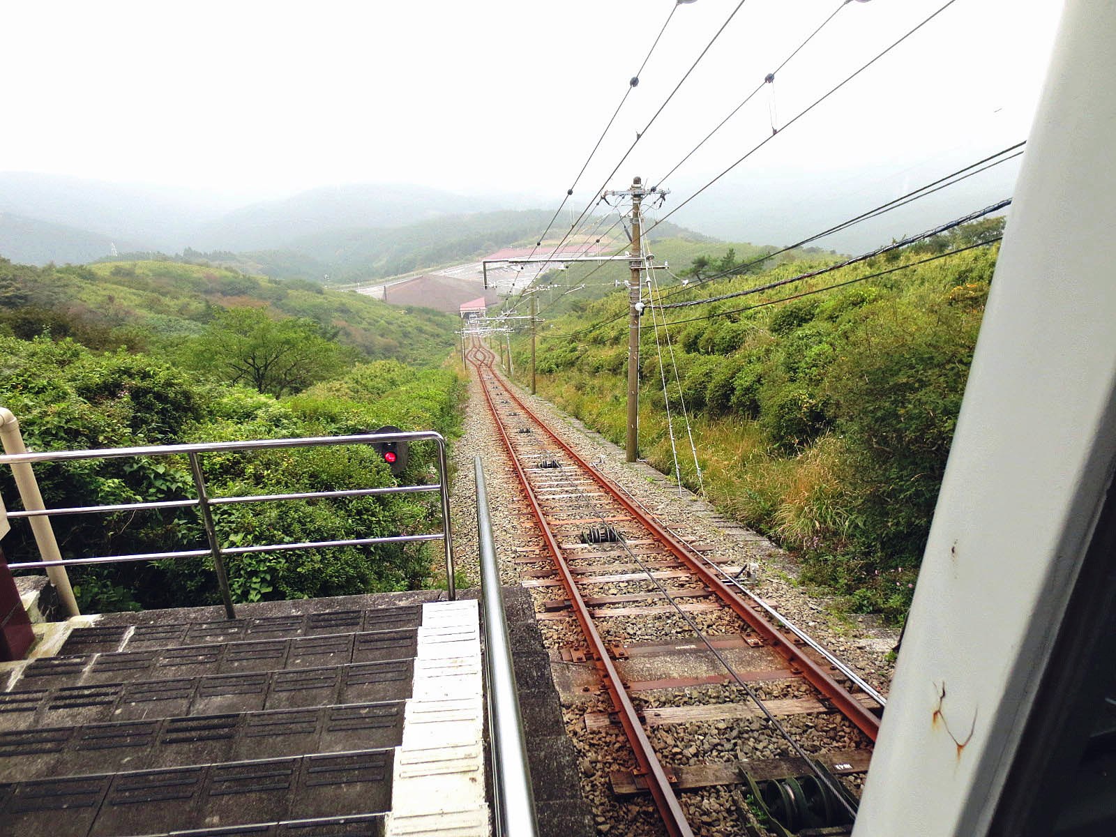 <ケーブルカーの建屋が見えた> <十国峠到着でクールダウン>