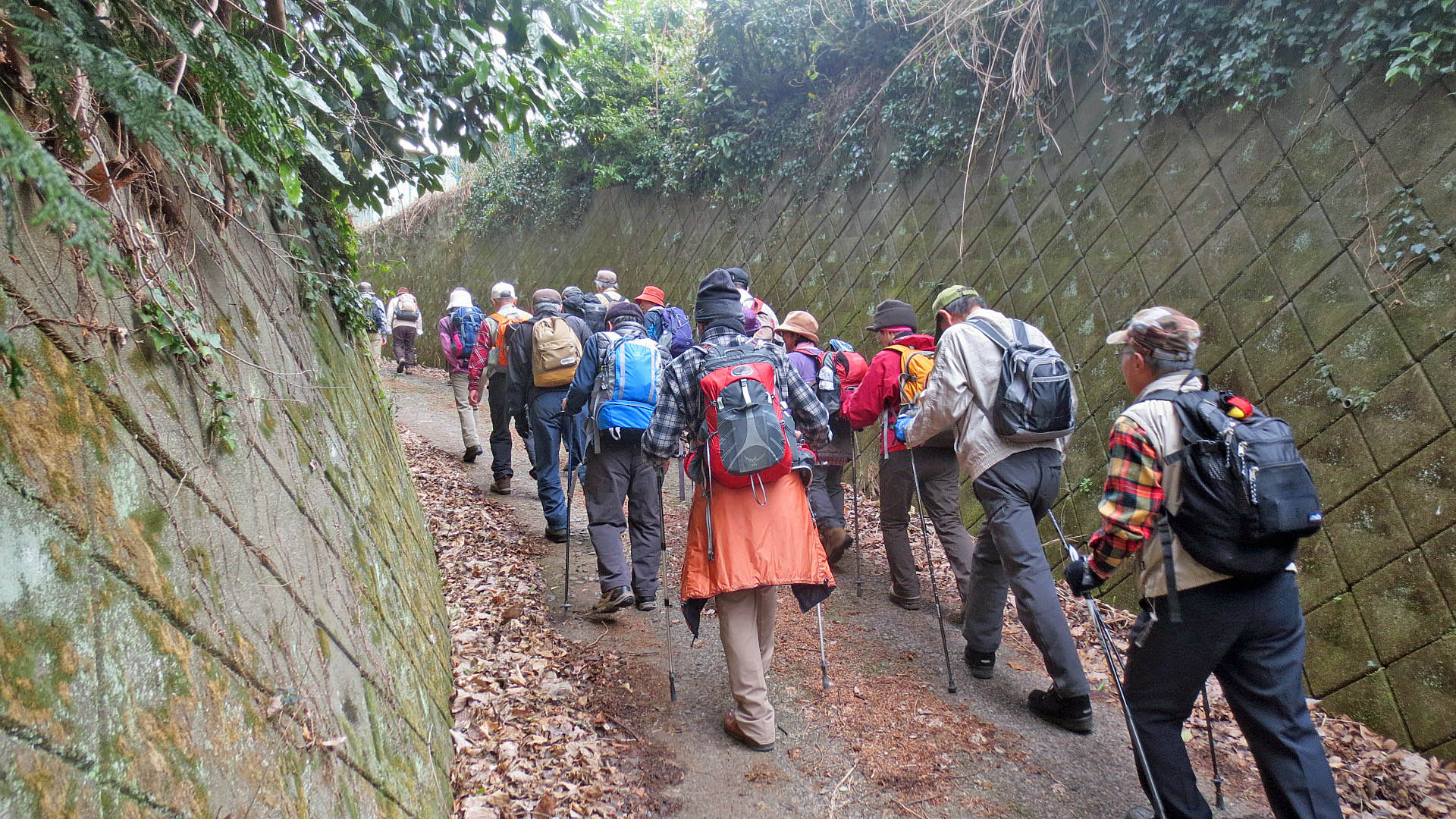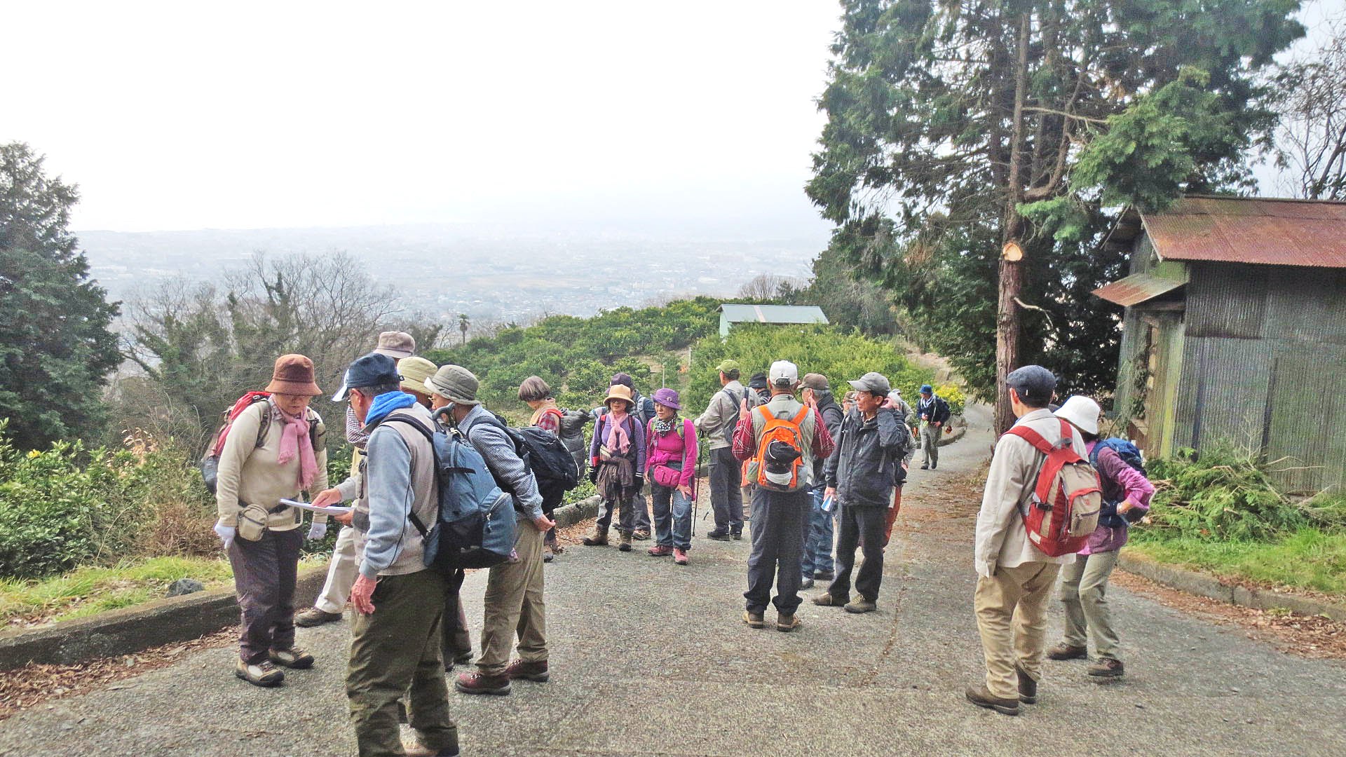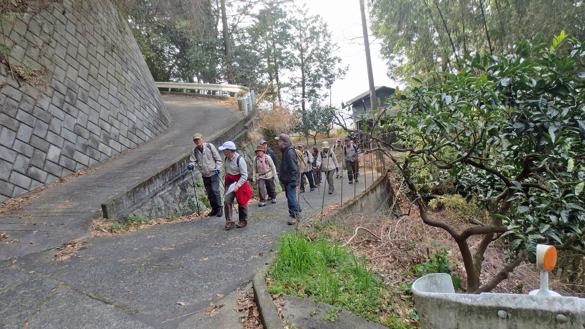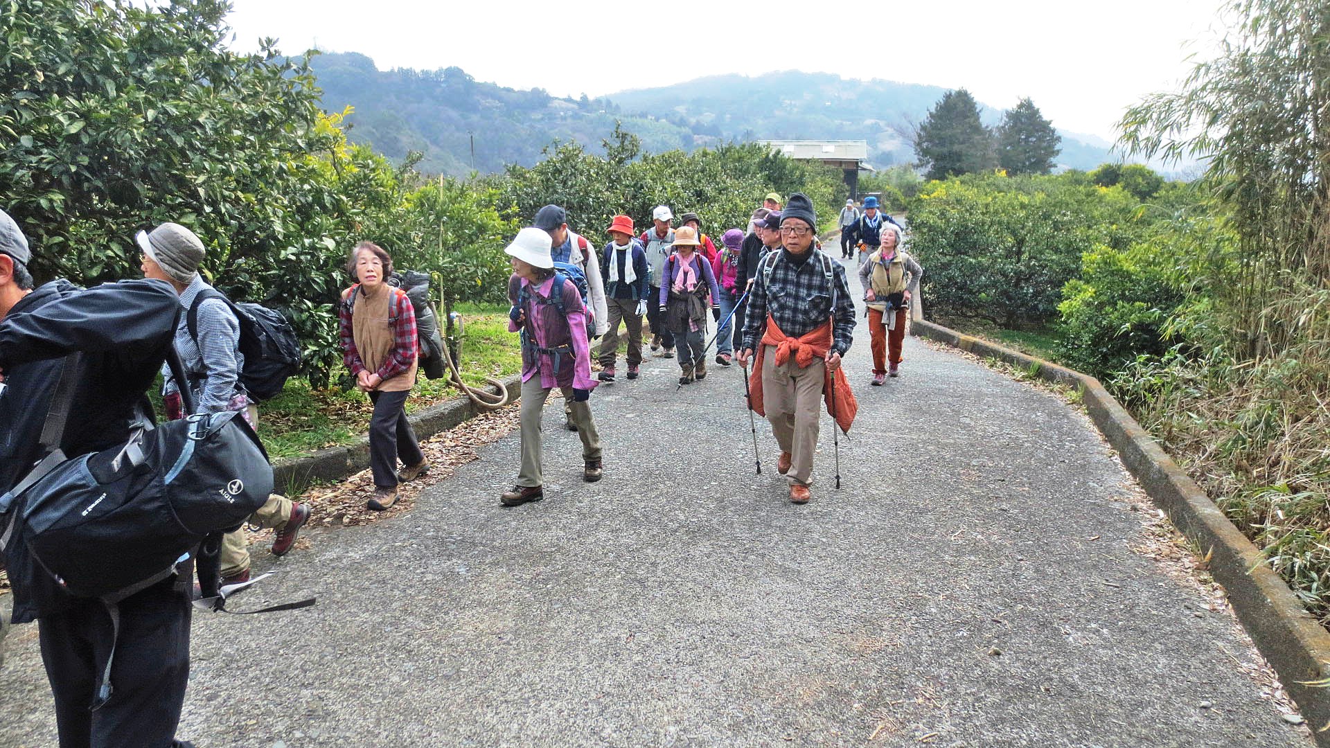 <みかん畑の中を行く> <不動山手前の急登山道>