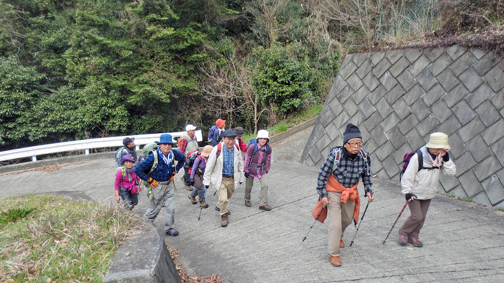 <舗装された急勾配の坂道> <なおも続く坂道を登って行く>