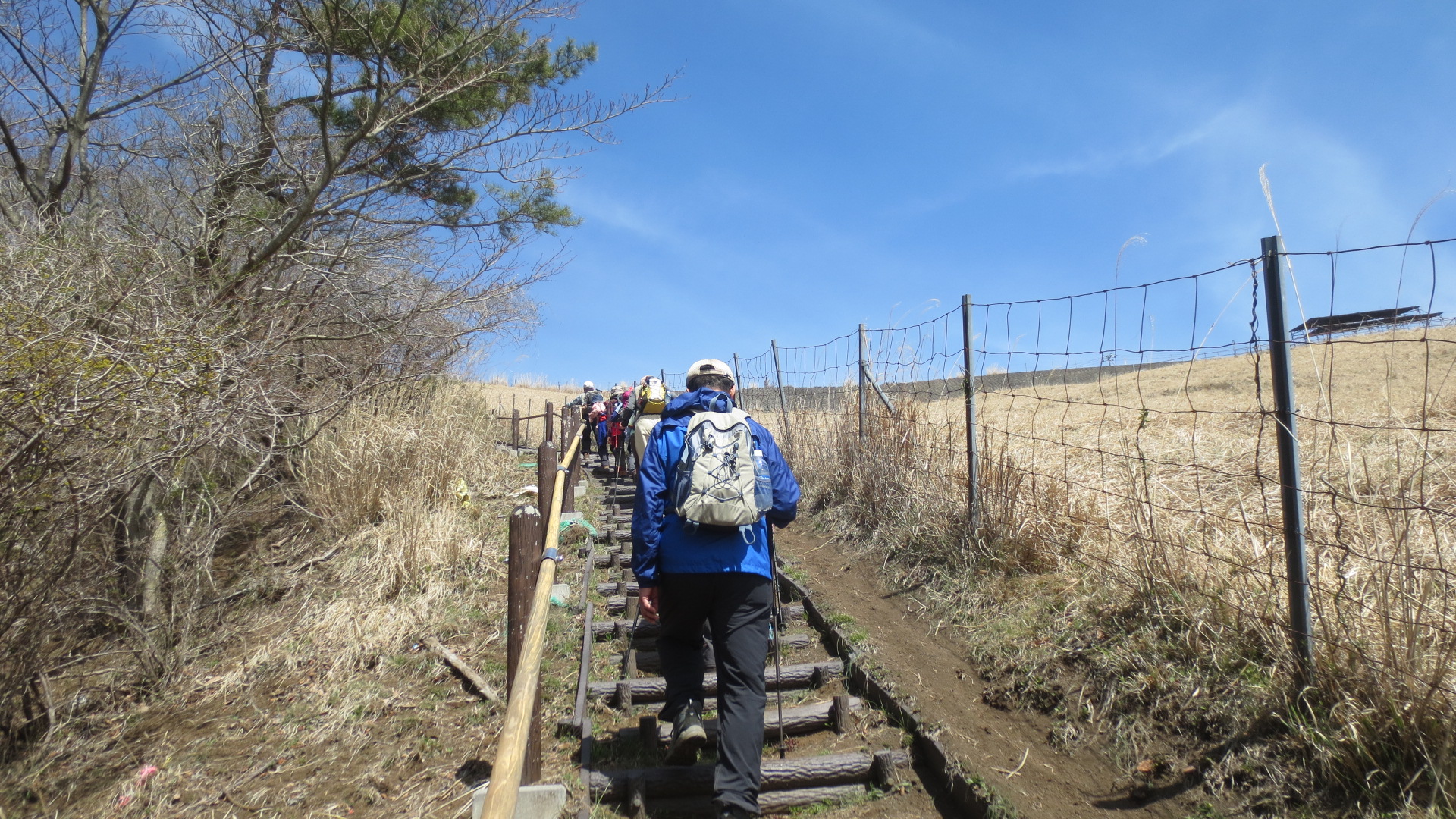 春の穏やかな日和の中、春風が心地よく頬を撫で最後の胸突き八丁の階段を登り終えると、そこには雄大な霊峰富士の姿が目に飛び込んできました。その美しさは三ッ峠から見る富士に劣らないぐらいでした。