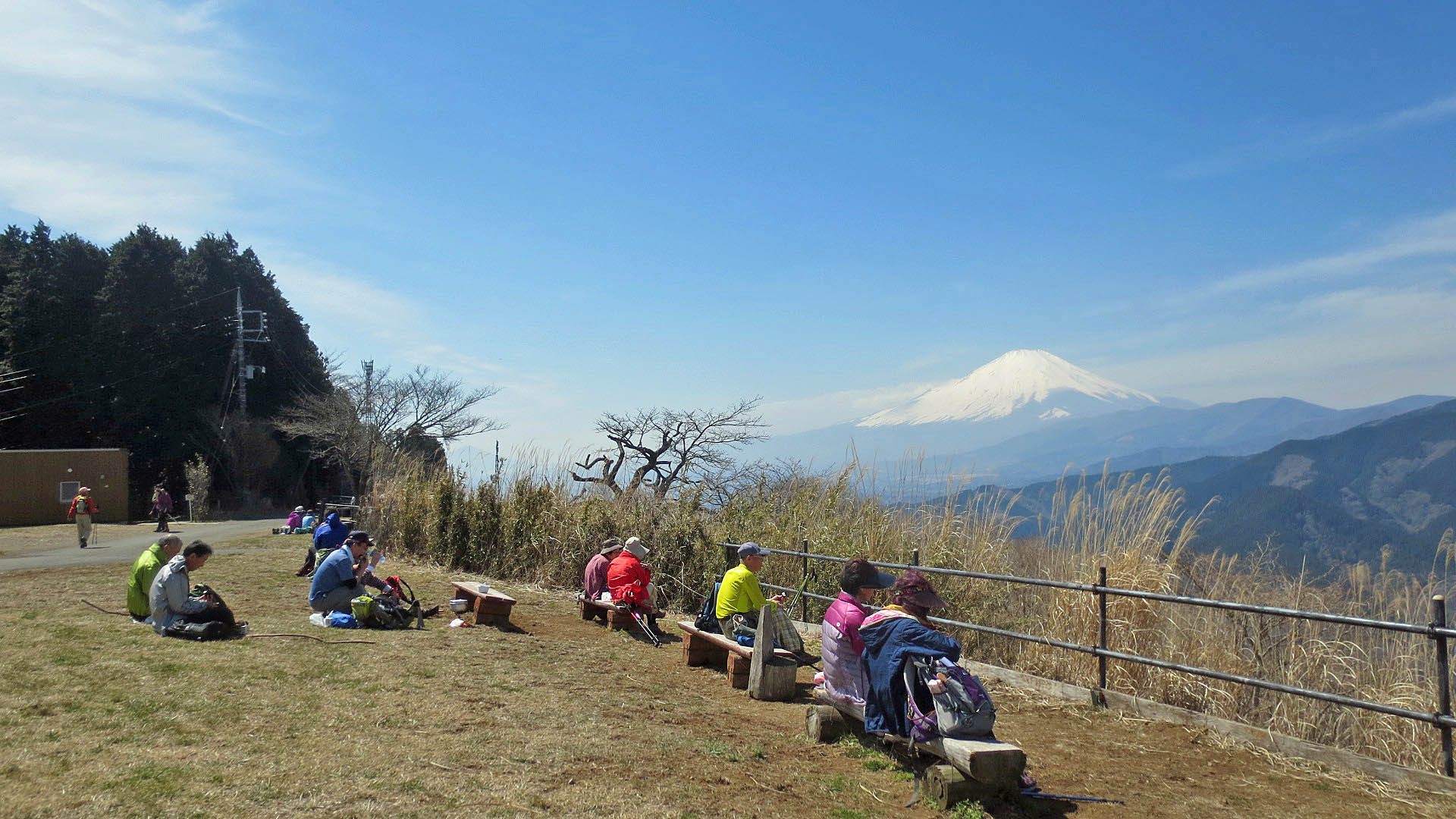 眺望が開けて、左手には蛭ヶ岳をはじめとした丹沢山塊、右側には金時や明神の馴染みのある箱根の山々が姿を見せました。