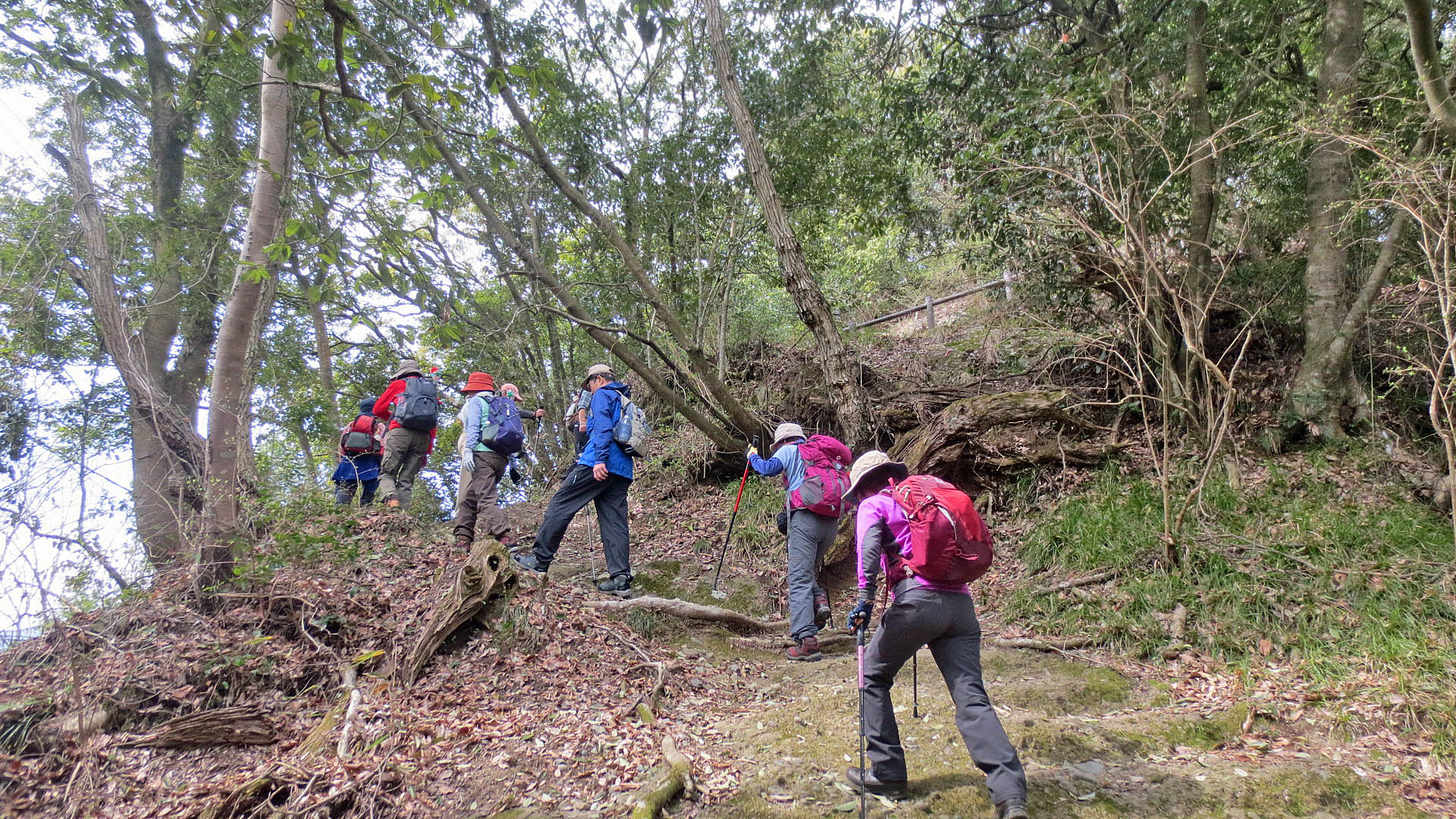 山間の集落の急坂をうぐいすの鳴き声に胸を和ませながら縫って、わずかに見える頂上を目指しました。桜は未だでしたが新緑が芽吹き、またうす紫色の可愛らしいすみれが迎えてくれました