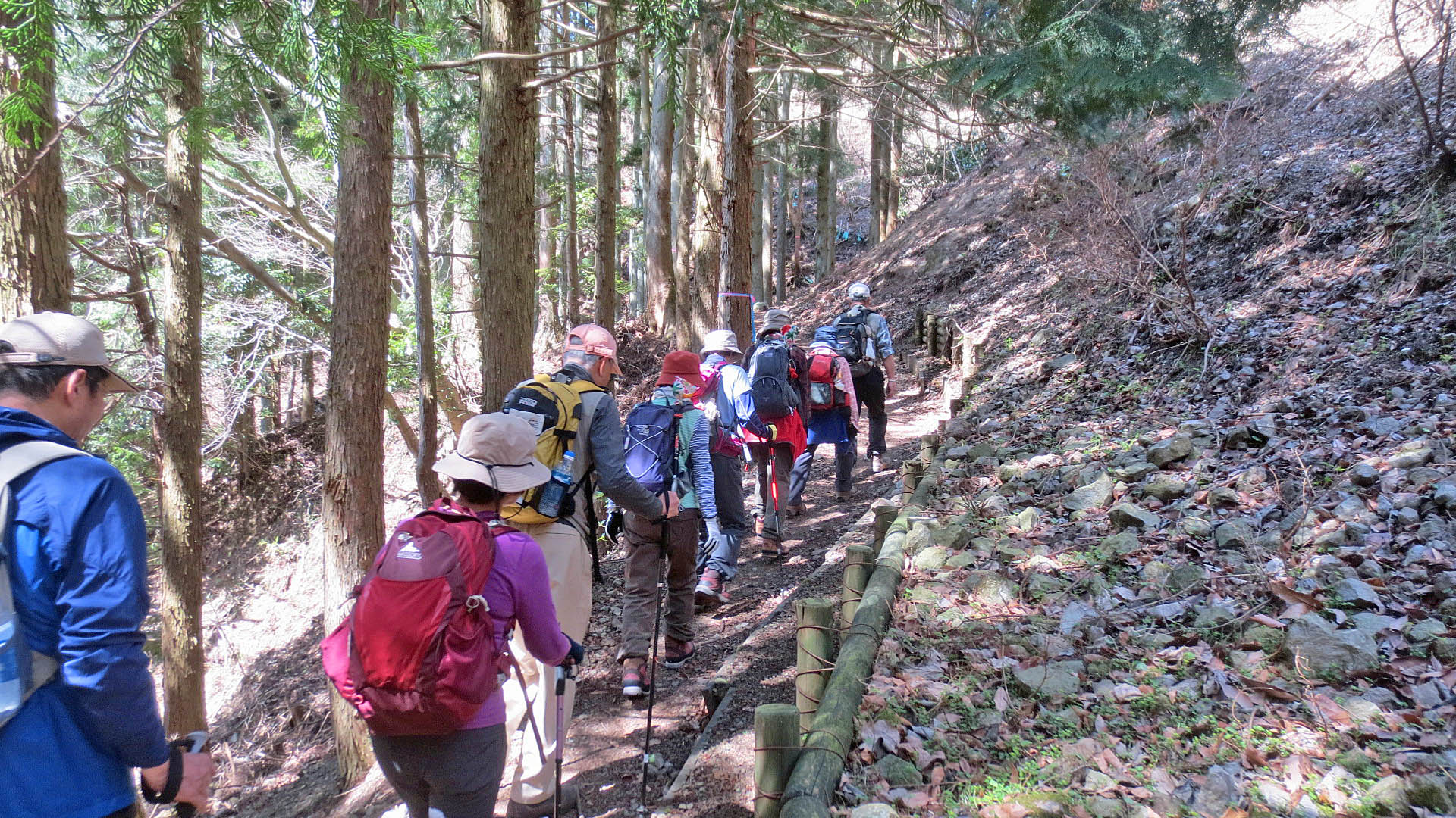 今日は登山というより、時折水面の光る酒匂川を眼下に眺めながら各々お喋りにいそしみ、さながら小学生の時のピクニック気分でした。 桜咲く谷峨の駅前広場で整理体操を行い、新松田の居酒屋の二次会で盛り上がり、無事気持ち良く帰路につきました。(記:関根)