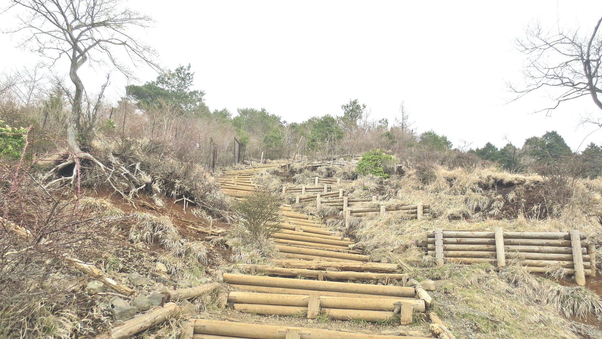 <再び、気を入れ替えて山頂を目指す> <山頂へと続く長い階段>