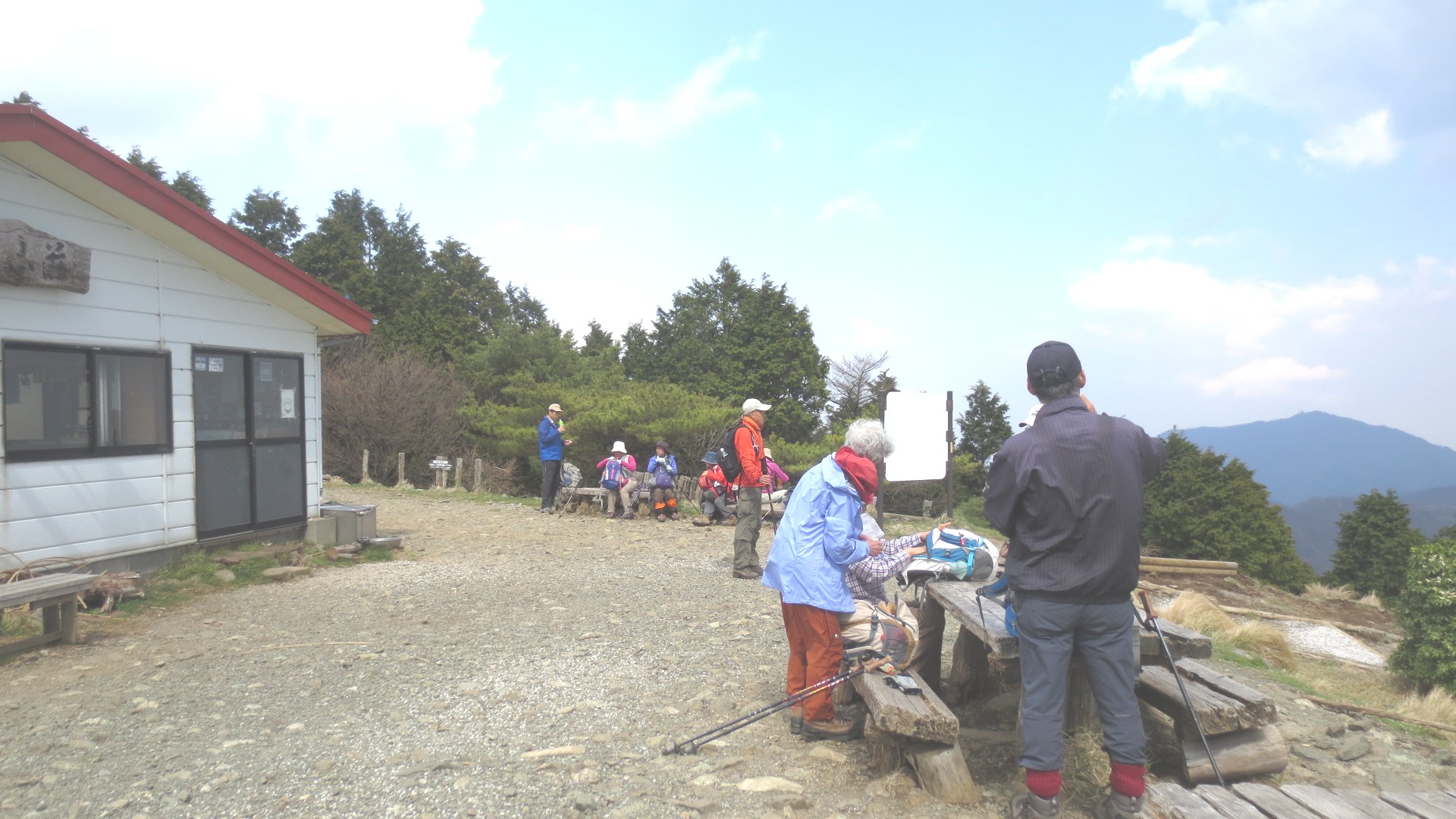 <12時半到着、お昼の弁当が美味しい> <登頂記念写真>