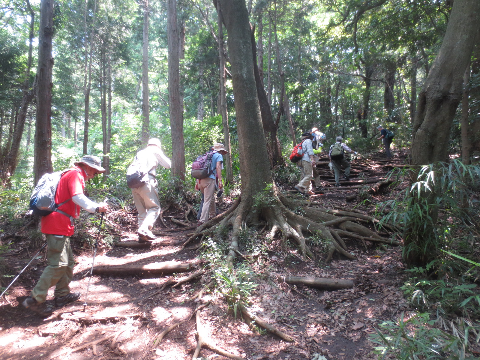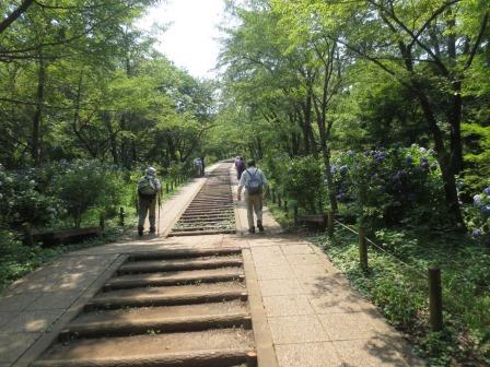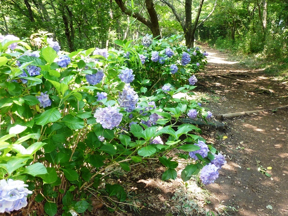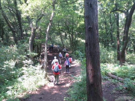 暑い時期でも、山道は樹間を歩くため、強い日差しを遮り、終始、緑陰の中を歩きました。途中、アジサイ、山百合が見事でした。