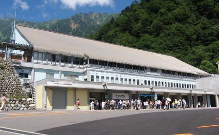<黒部立山アルペンルート入口、扇沢駅に到着>
