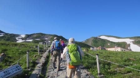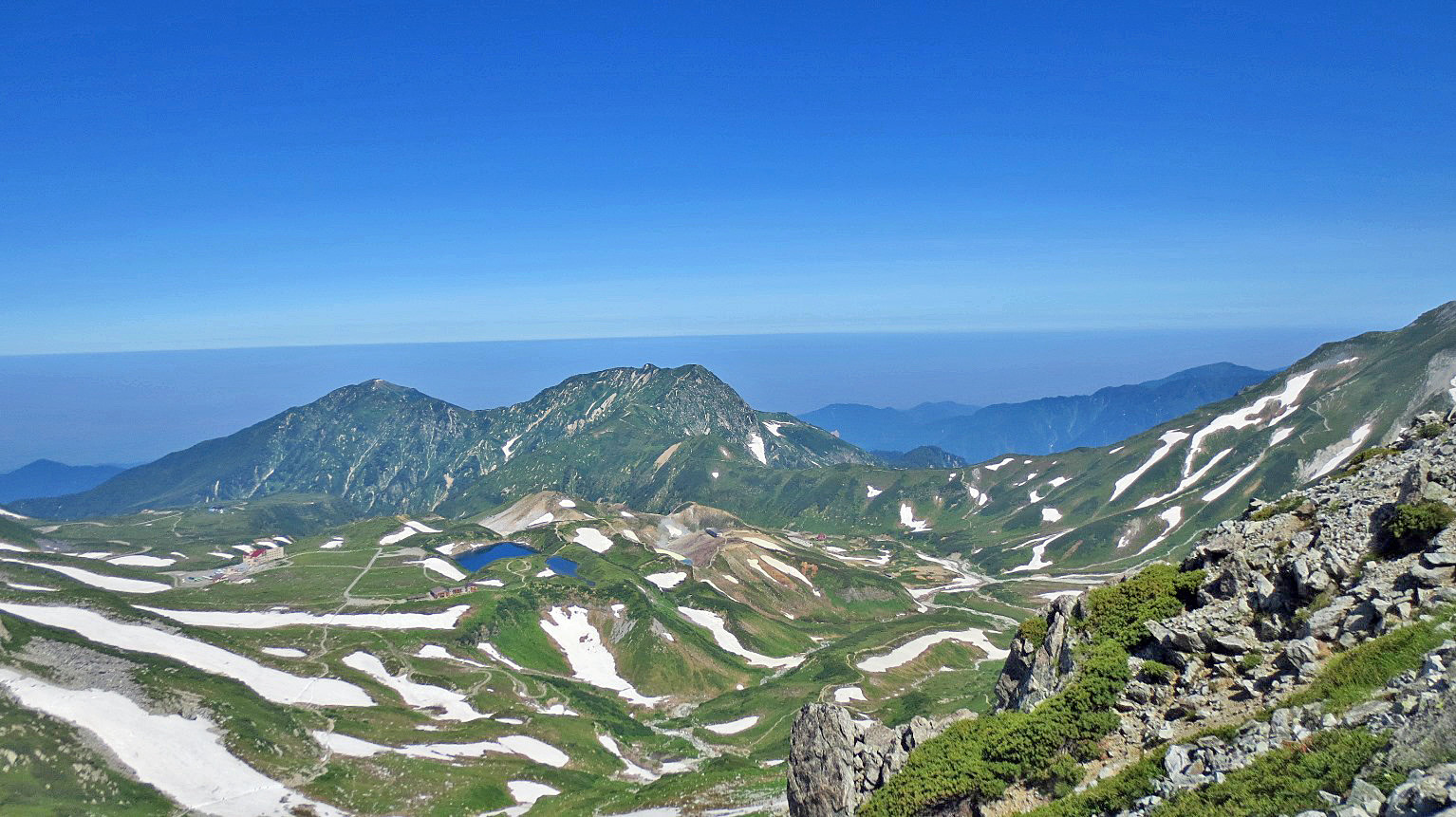 最高の好天気に恵まれ、雄山の頂上から剣岳、槍、穂高、針ノ木、笠ケ岳等の360度の素晴らしい展望を満喫し、青い空と残雪、高山植物など、本場のアルプスを体験して来ました。