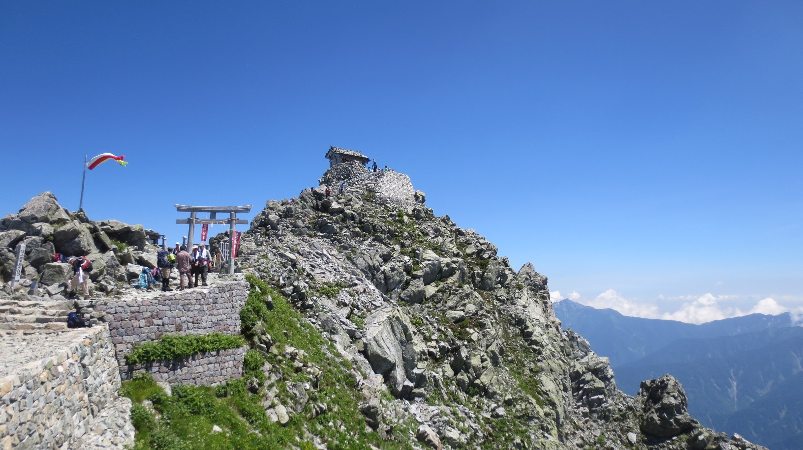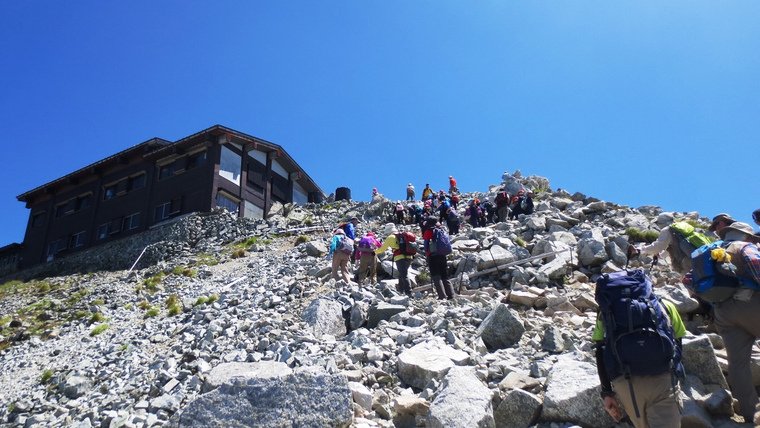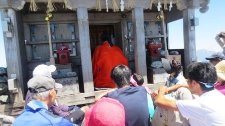 私達、高齢者も負けじと、頑張って登り、山頂の雄山神社で神主のお払いとお札と鈴を頂き、、3003mの高所の登れたことが、健康であることの賜物と爽やかな感情が