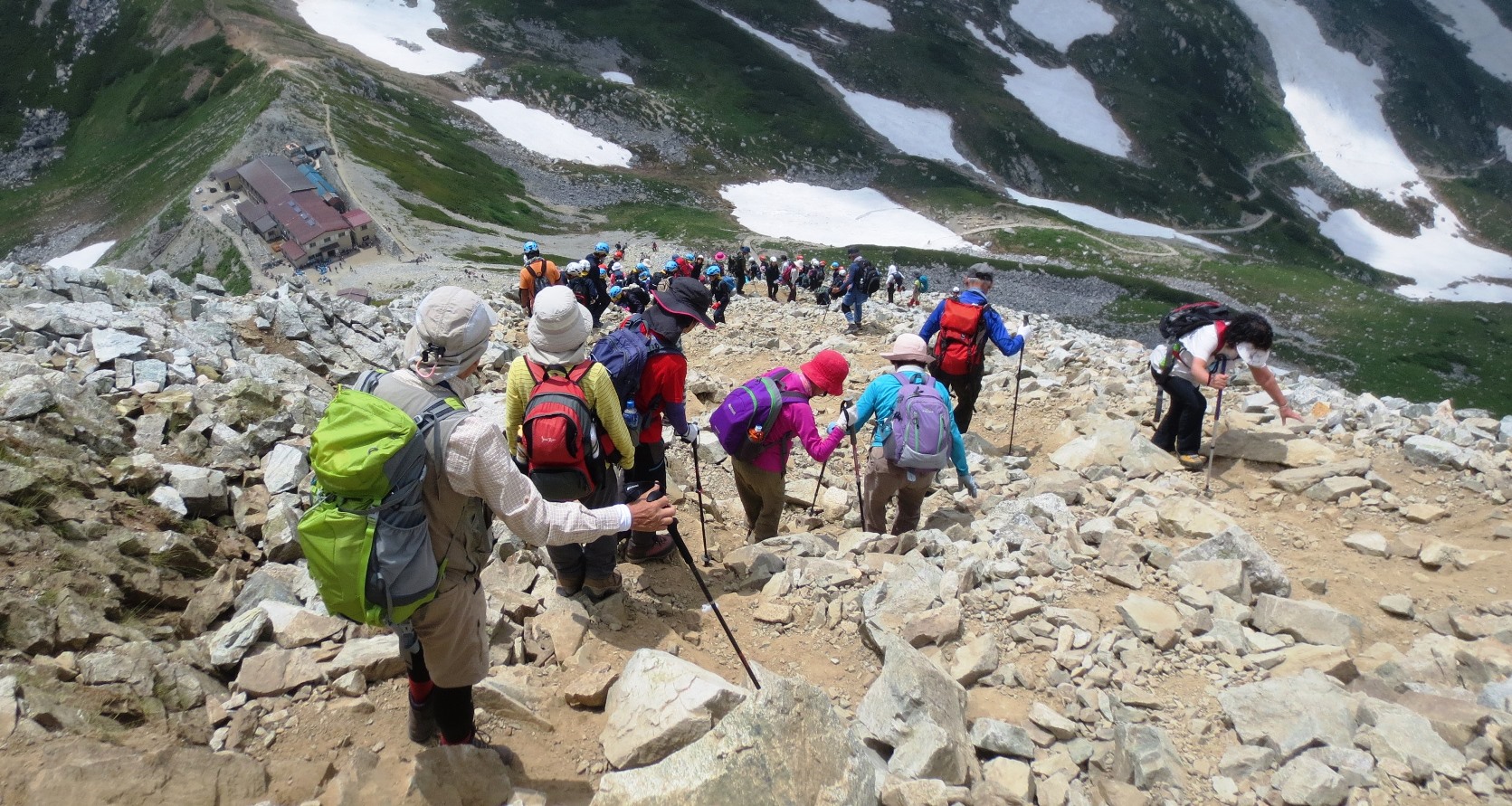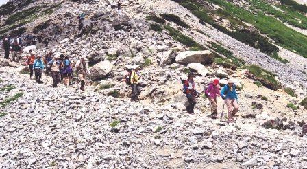 立山は、富士、白山と共に、日本三霊山一つで、昔から厚い信仰の山として、毎年、富山県などの小学生が恒例の学校登山が実施され、今回も多くの小学生が元気に登っていました。